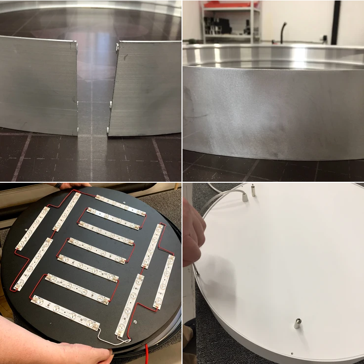 Светильники серии HALO изготавливаются из экструдированного алюминиевого профиля. Профиль проходит через сгибание на специальном станке, сварку, зачистку, шлифовку. Основание выполнено из алюминия, что обеспечивает необходимый теплоотвод от источника света. Применение данной технологии обеспечивает надёжное, безопасное и эстетически превосходное изделие.
