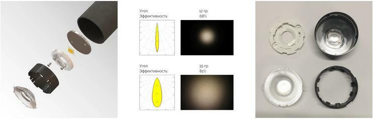 В качестве источника света используется LED лампа (световой поток 450 лм) или CoB Lumileds (световой поток 1500 лм).